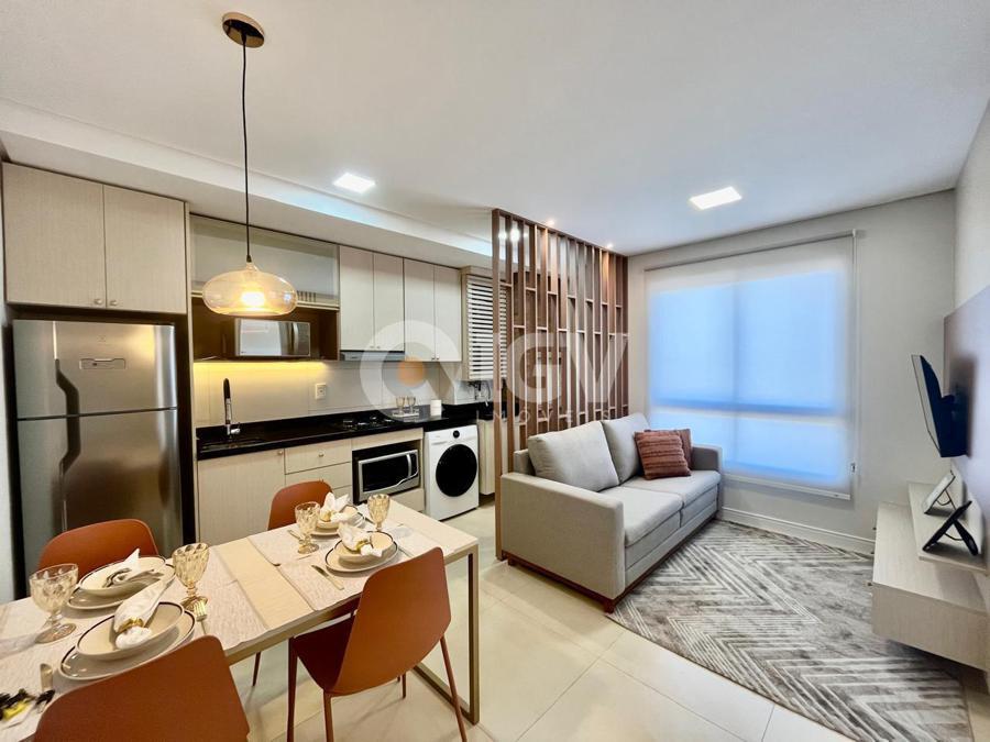 Excelente apartamento mobiliado e decorado no ED.Vargas 1353. Andar alto, boa posição solar, 1 dormitório, com box de garagem. Condomínio conta com salão de festas, academia, espaço garden, área gourmet. Localização com fácil acesso ao centro, mercados, farmácias, escolas. Oportunidade de moradia para você que busca segurança, tranquilidade e conforto ou rentabilidade com aluguel. Condomínio aceita AirBnb.