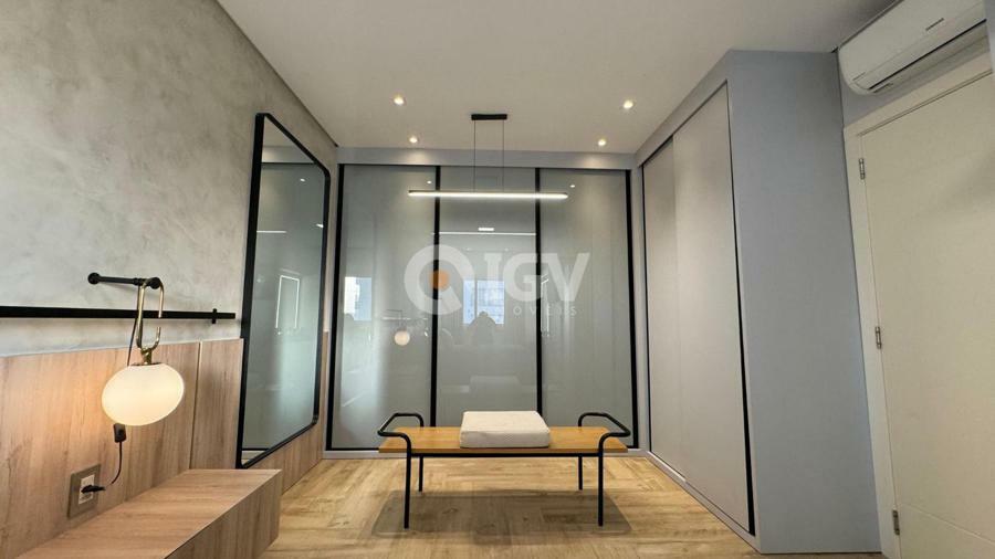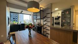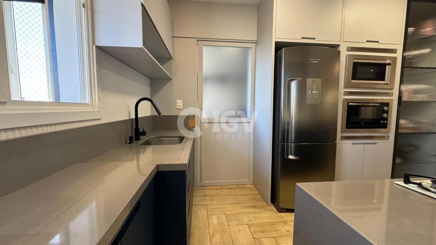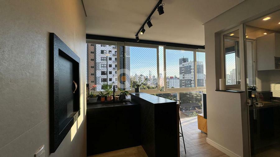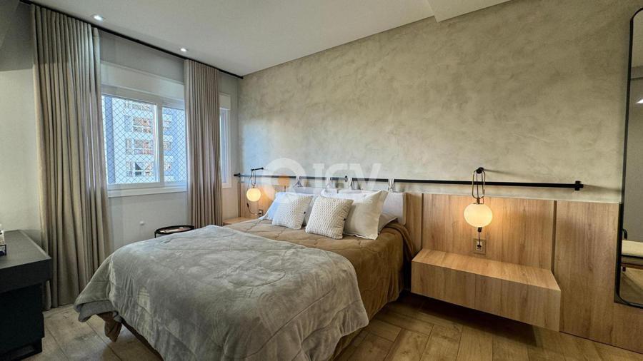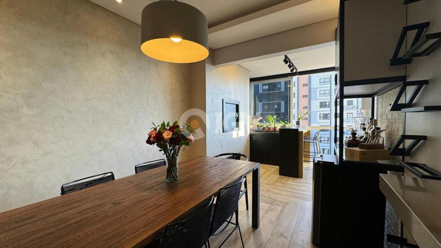 Apartamento finamente mobiliado, de frente, com sacada fechada.