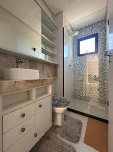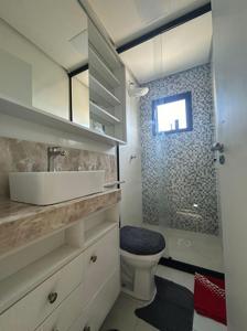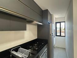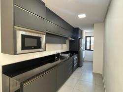 Fica no apartamento a cozinha feita sob medida de excelente qualidade e móveis dos banheiros.