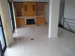 - Parte superior: ampla sala com lareira, lavabo, cozinha semimobiliada, área de serviço e terraço com churrasqueira.