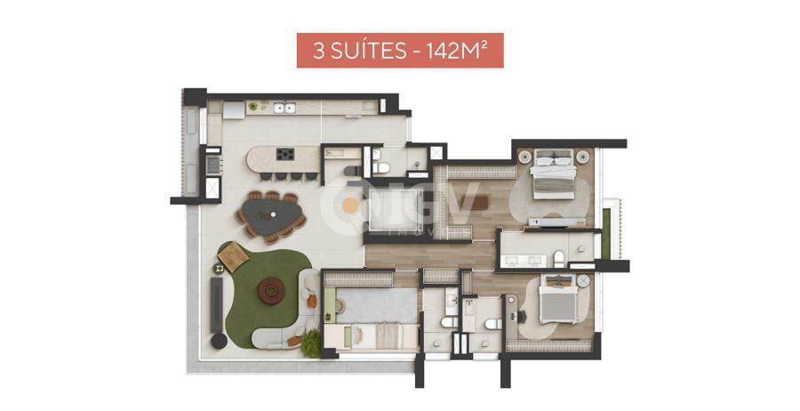 26 apartamentos de 142,46m2 com 2 suítes, 2 vagas de garagem