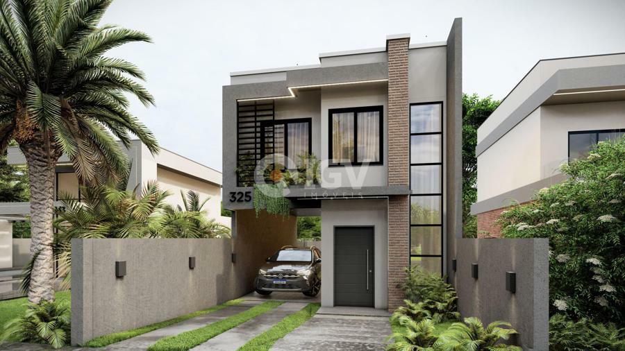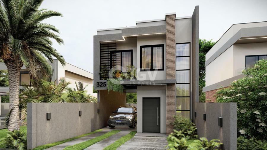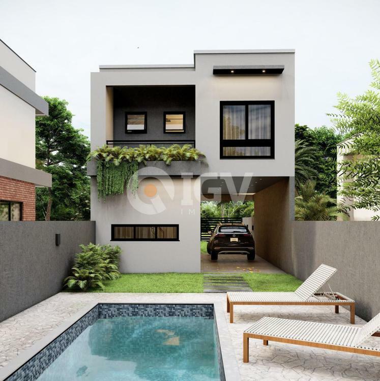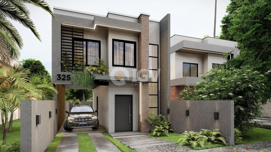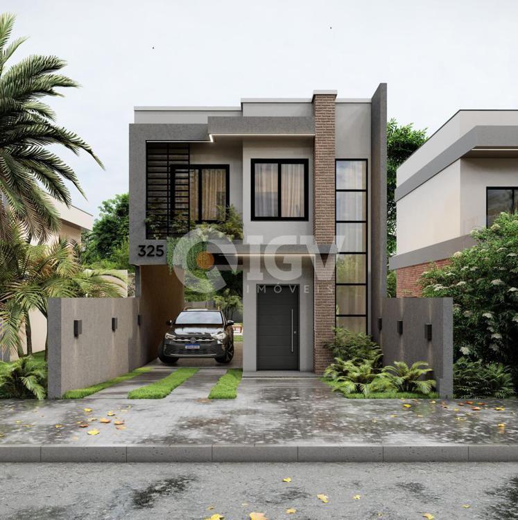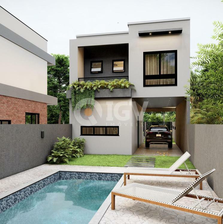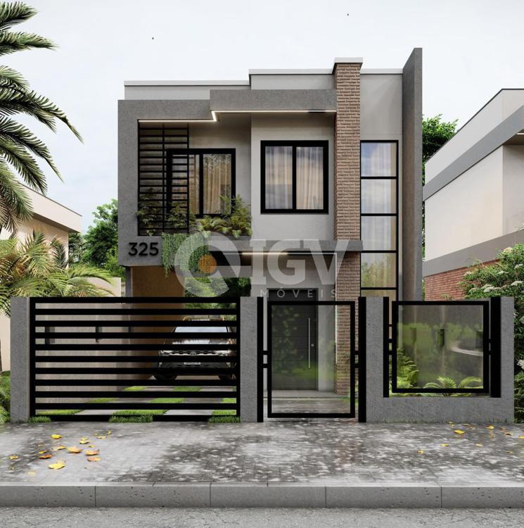 Living integrado com sala de estar, jantar e cozinha com lavanderia além de garagem para um veículo no pavimento térreo. No pavimento superior conta com banheiro social e 3 dormitórios, sendo 1 suíte com sacada.