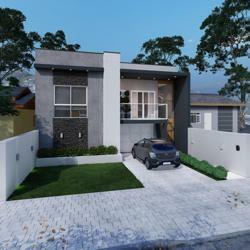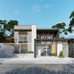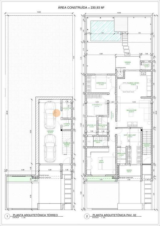 Pavimento inferior com garagem para 2 veículos, lavanderia e depósito.