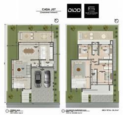 Conta com 3 dormitórios sendo uma suíte no pavimento superior e tem sua área social integrada no pavimento térreo.