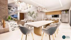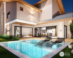 Essa casa proporciona todo o conforto e segurança que sua família merece. Com detalhes em revestimentos naturais como madeira, pedras naturais e vidro, ela se destaca por seu requinte e conforto.