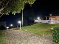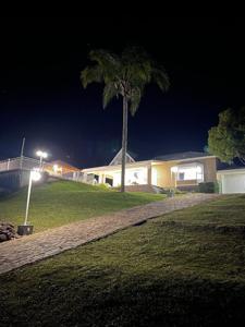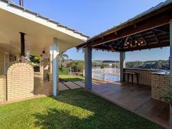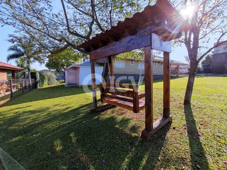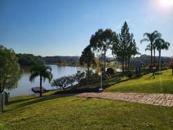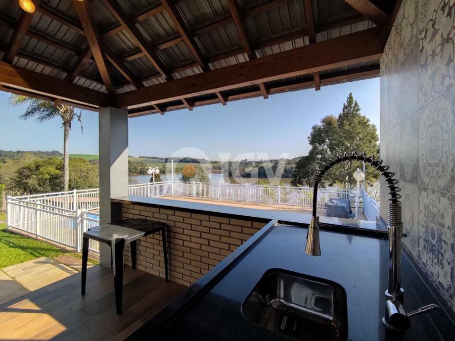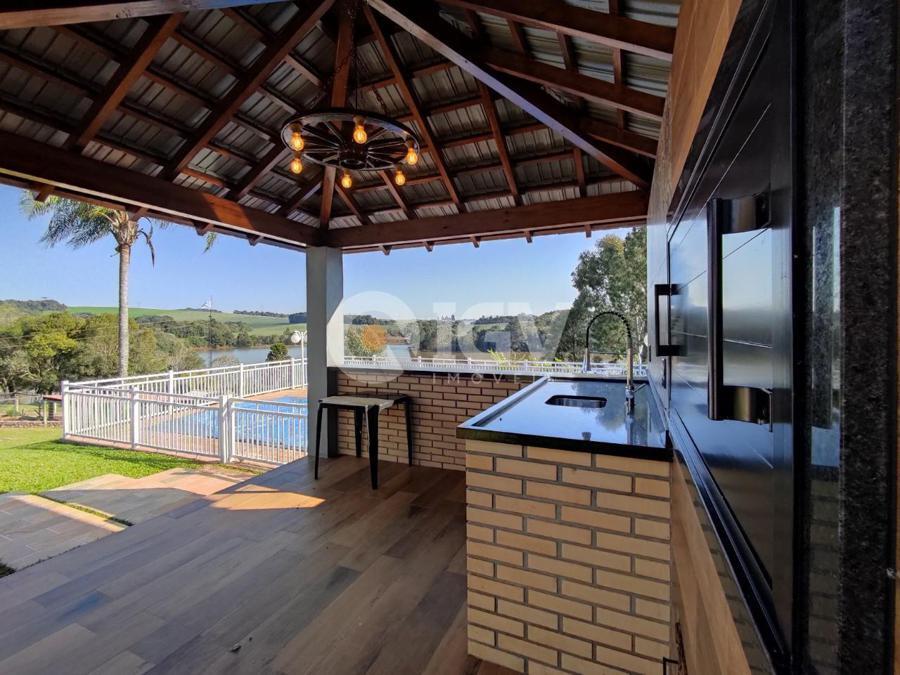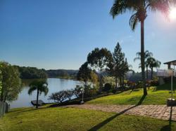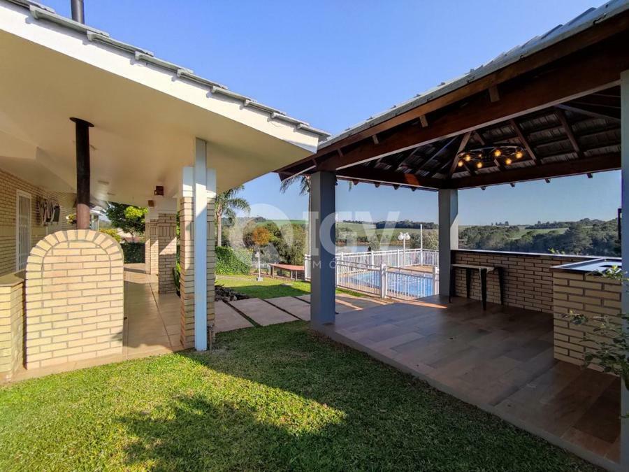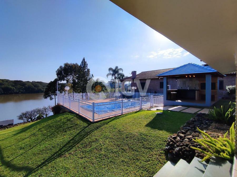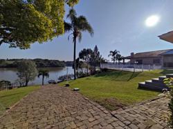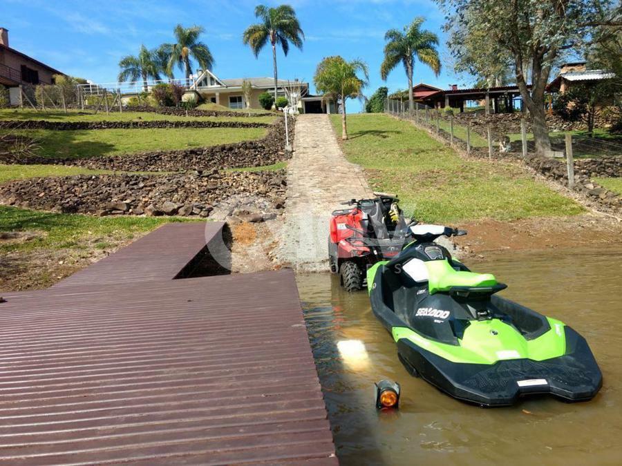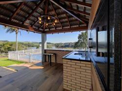 A chácara comtempla dois terrenos juntos com paisagismo, árvores frutíferas, parreira de uva, horta automática, totalmente cercada com tela soldada e palanque de concreto, piscina em fibra tamanho 4x8 (com aquecimento solar, sistema novo), mais deck tamanho12x10, sala de jogos, depósito, oficina, garagem para embarcações, lareira canadense de alta performance, trapiche flutuante ecológico com madeira tratada, rampa privativa em concreto, portão eletrônico na chácara e no condomínio (abre o portão de dentro de casa com câmera).