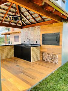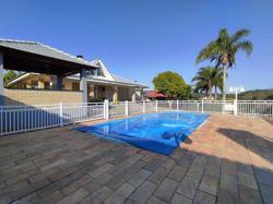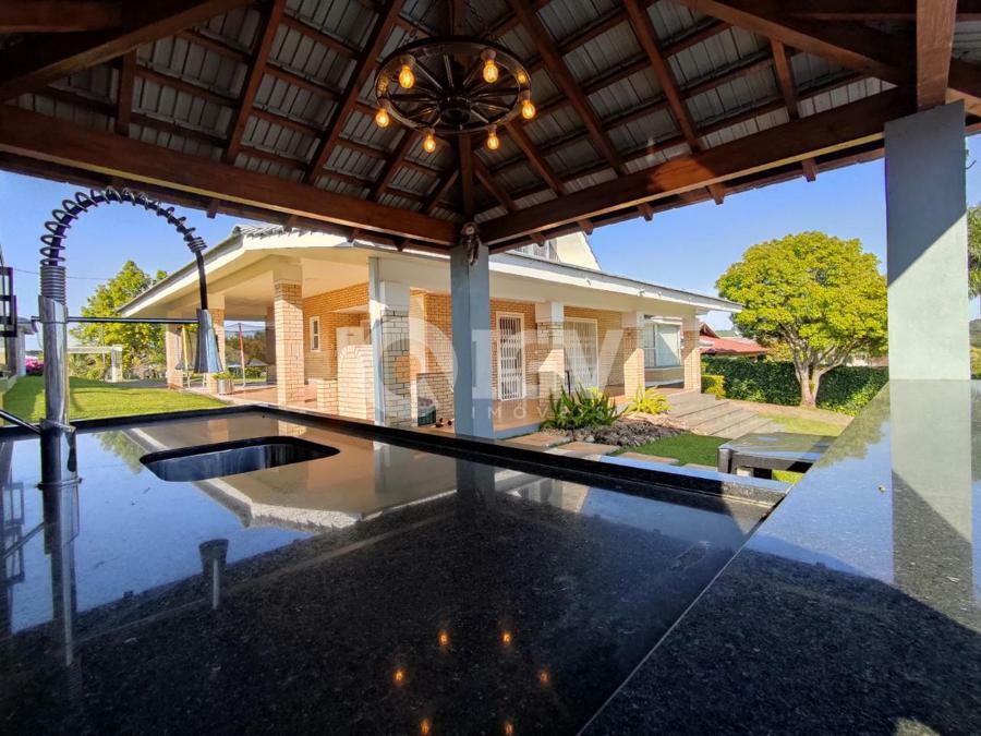 Casa alto padrão contendo 350m² (paredes duplas), 3 suítes, sala de jogos, banheiro social, varanda frontal e lateral, quiosque novo (20m³) contendo churrasqueira com fogão campeiro e forno a lenha.