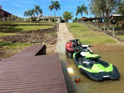 Condomínio com câmeras, 5 moradores permanentes, caseiro do condomínio, cancha de bocha, rampa para largar embarcações na água, poço artesiano, Internet à rádio, salão de festas e quadra de futebol.